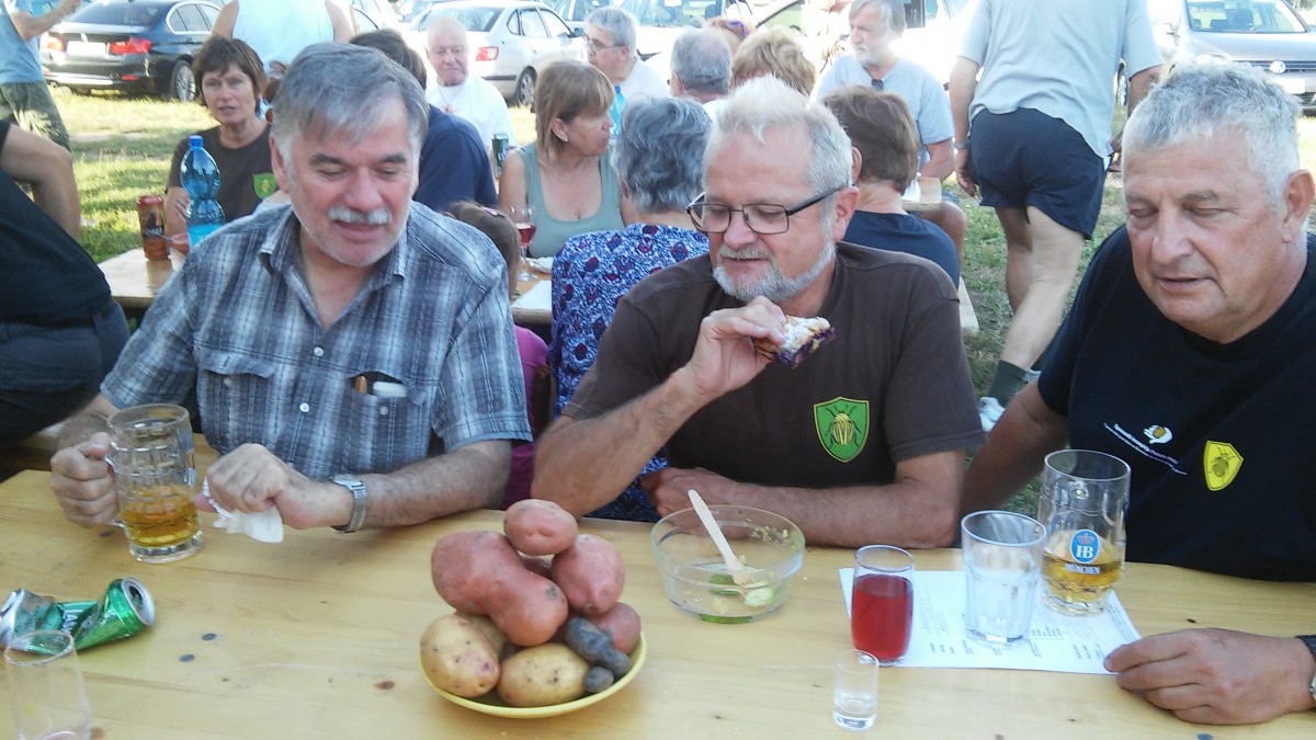Po dveh urah, ko je bil pridelek v vrečah, je nastopil čas za skupno fotografijo delovnih udinj in udov, kot nekaterih zamudnikov. Število prisotnih udov se je namreč večalo, bolj 20160809_174735ko se je bližal konec delovne akcije in je bila na programu » fešta« z kultno jedjo -praženim krompirjem in mesnim dodatkom, pripravljenim od Tineta – Špančka. Manjkalo pa ni tudi raznih sladic, zavitkov itd. same dobrote pridnih udinj.
